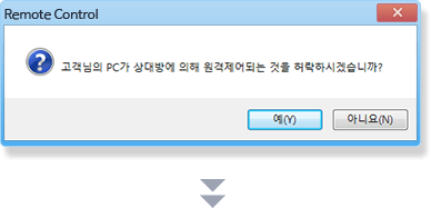 3. 원격제어 허락여부를 묻는 메시지가 나오면 "예"를 누르시면 됩니다.